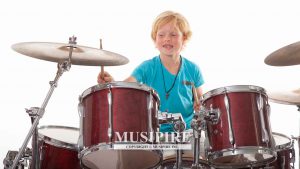 young boy playing drums